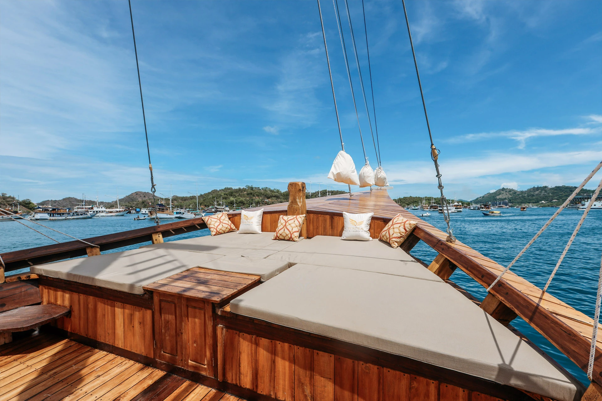 Crafted in Bulukumba using the finest selected wood, this pinisi brings together graceful design and warm natural textures that blend beautifully with the landscapes of Komodo. Wide open decks invite you to relax, bask in the sun, and enjoy calm moments under the sun, creating a sailing experience that feels both intimate and unforgettable.
