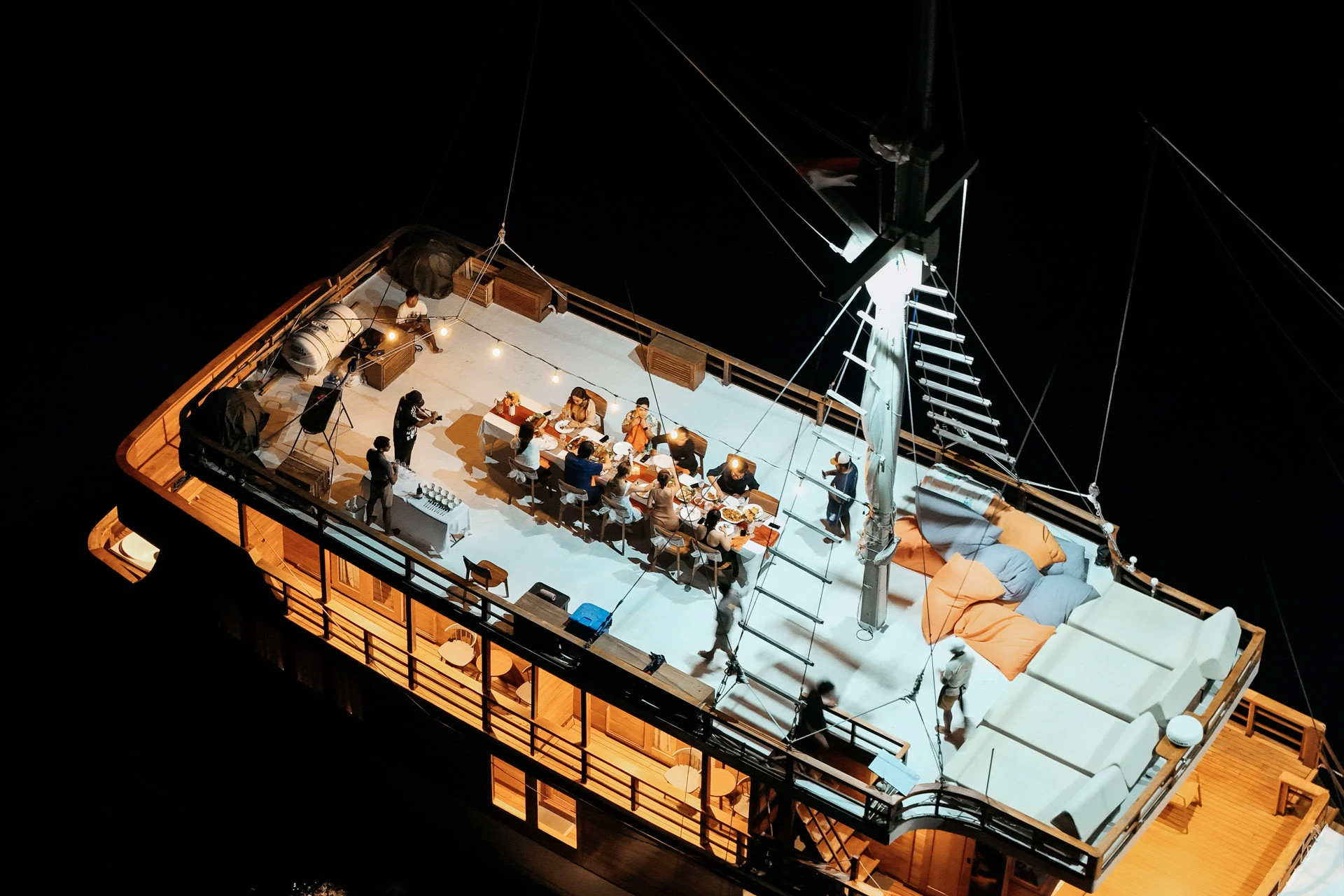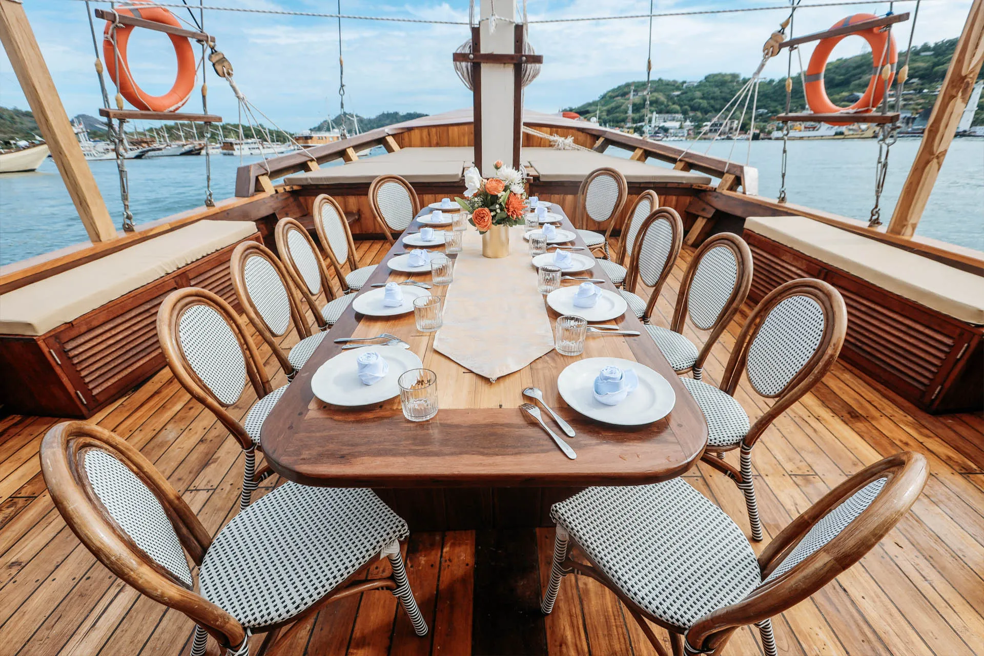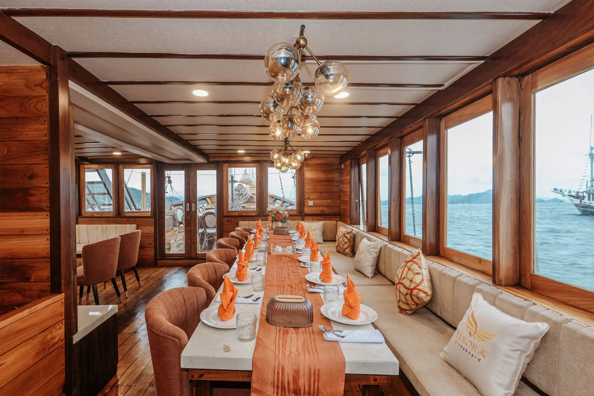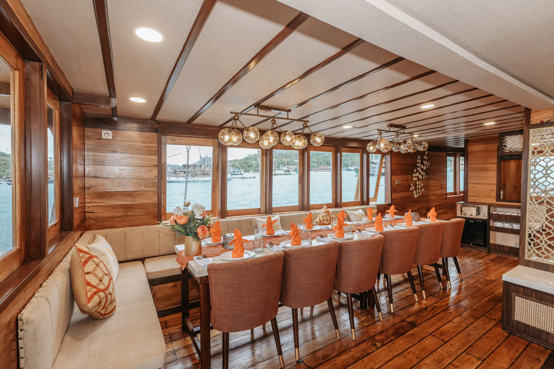 Experience the pleasure of dining at sea with the stunning scenery of Komodo all around you. Every meal is served on the open deck with wide ocean views, from golden sunsets to starry night skies, complete with freshly prepared dishes and a soothing coastal atmosphere.